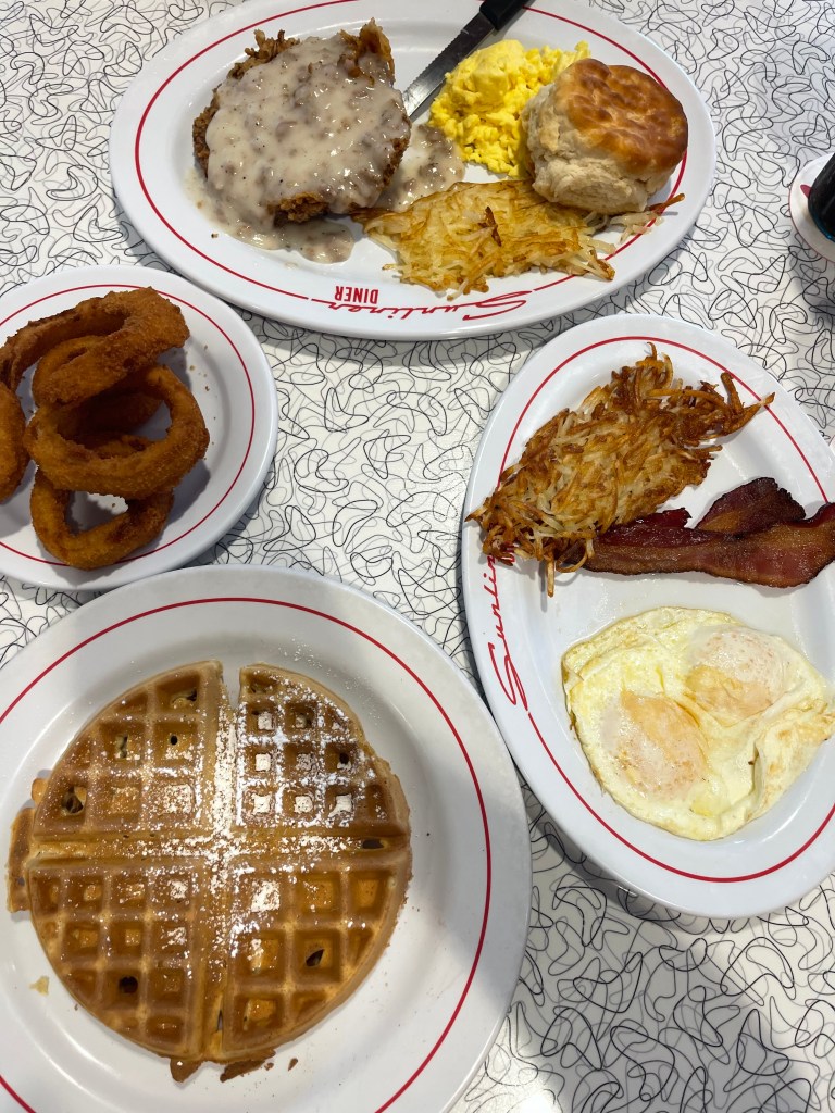 By lunchtime, we headed down to the Parkway in Pigeon Forge to find something to eat. There was a 50s-themed diner, Sunliner Diner, nearby so we put our name on the list. Inside the diner felt like jumping into a movie scene. There’s classic cars, neon lights, jukeboxes, and servers wearing old school uniforms. I ordered a waffle, onion rings, and a crispy diet coke. Honestly, I don’t think it gets more southern than that.