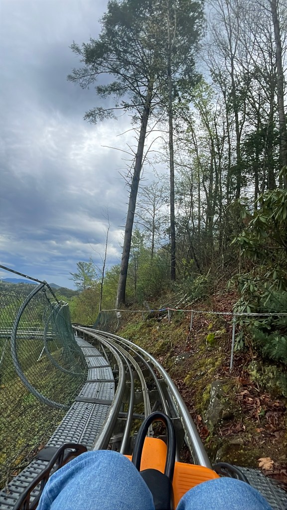 Our next stop was just down the street. The Smoky Mountain Aline Coaster. It’s the longest mountain coaster in the US! The view riding up the mountain was so peaceful and pretty but I’m not going to lie, I was a little anxious that I was going to see a bear and not being able to do anything about it. That thought probably helped fuel my adrenaline. HA!