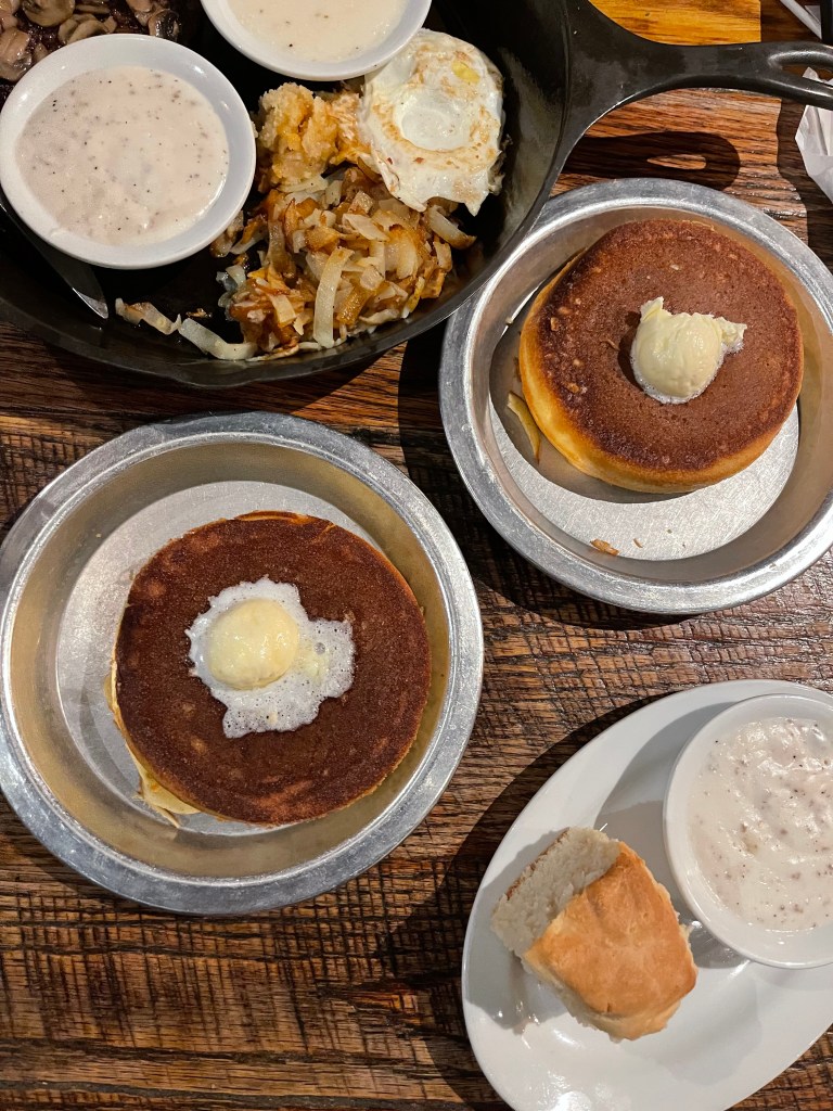 We moseyed around a little before getting ready for the day. The morning thunderstorms really showed us just how “smoky” the smoky mountains can be. It was incredible to watch the storms roll in. After waiting in line a solid 45 minutes for breakfast yesterday, we were a little smarter today and joined the restaurant’s waitlist ahead of time. Today’s brunch spot? Crockett’s Breakfast Camp.