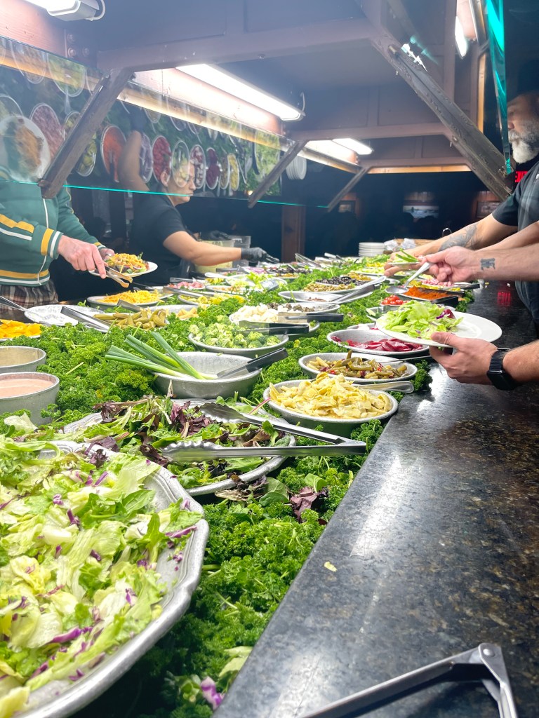 That night we chose to have dinner on the parkway in Gatlinburg at a place called The Peddler’s Steakhouse. The inside of the restaurant was a blast from the past…think stained glass light fixtures, red carpet floors, and an unlimited salad bar. We sat next to the window and enjoyed the view of the Little Pigeon River. We ordered the prime rib, onion rings, and of course made multiple trips to the salad bar.